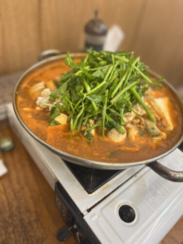 市場の中で屋台食を食べたあと、気になっていた海鮮鍋のお店へ